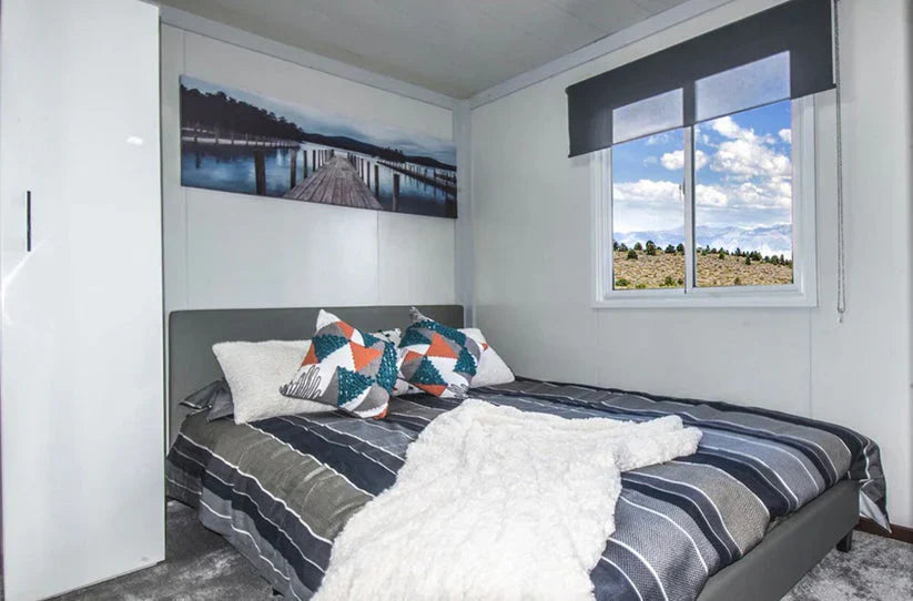 Sistema de chassis: Estrutura em aço + placa de fibra de cimento de 18 mm + pavimento laminado em PVC de 2 mm (opção de inserção em vidro disponível)